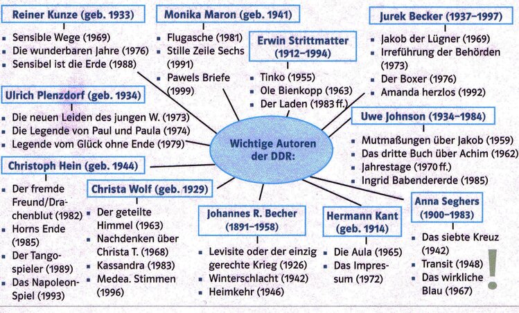 - Schon ab 1975 entstand mit der ,,Neuen Subjektivität” eine literarische Strömung, deren Anliegen nicht mehr primär die politische Wirkung war. Viele Autoren rückten das Individuum und seine subjektiven Erfahrungen in den Mittelpunkt ihrer Werke, der gesellschaftspolitische Bezug war dadurch meist immer noch gegeben. Beispiele: Peter Schneider (,,Lenz”, 1973), Karin Struck (,,K|assenliebe",1973), Botho Strauß (,,Die Widmung", 1978) und Max Frisch